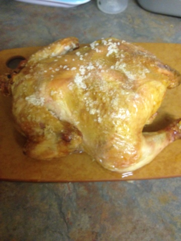 roast chicken on saturday night covered in extra coarse sea salt crystals.